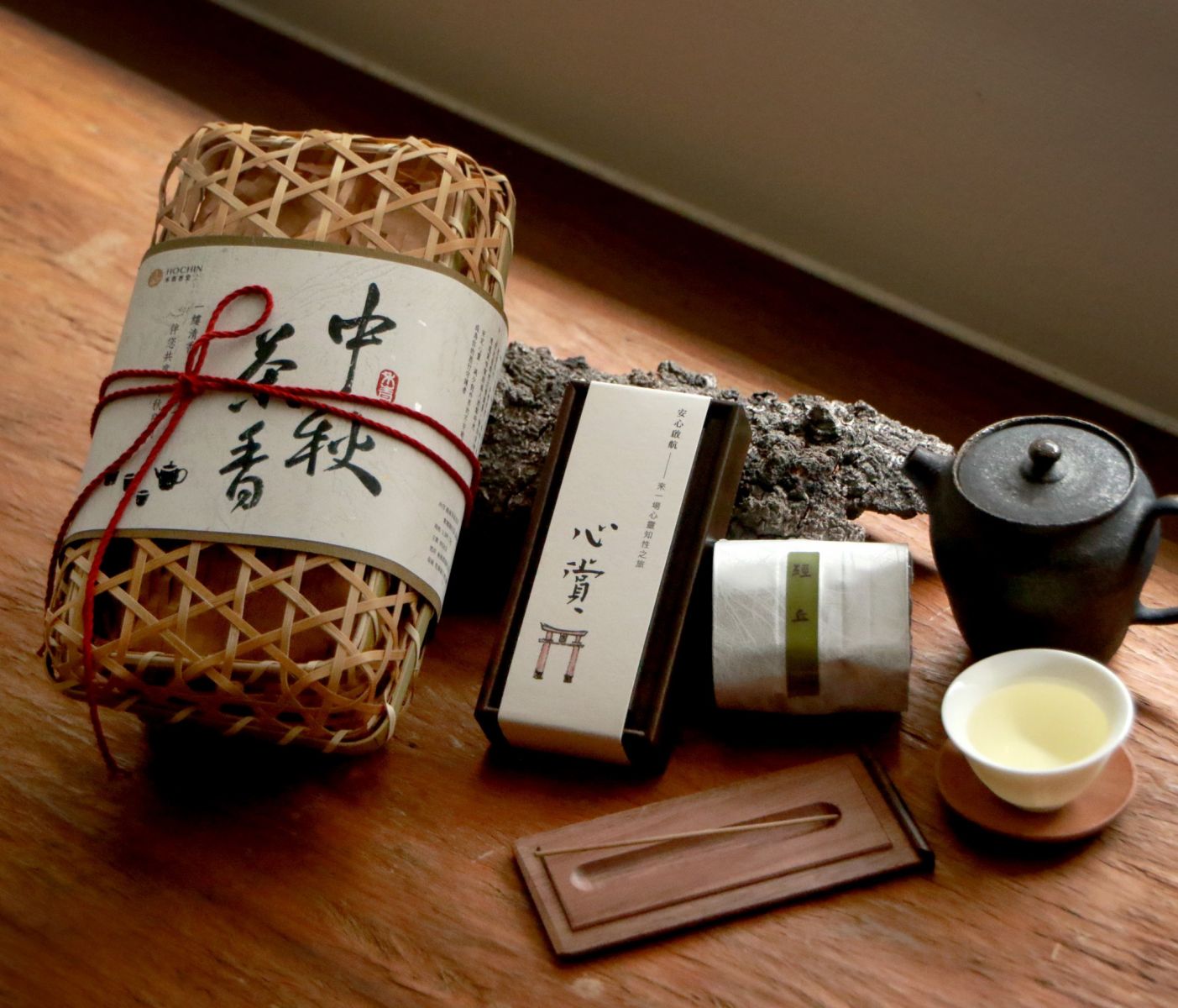 【中秋茶香】別緻典雅的設計,包含禾青經典的天然沉香線香,以及台灣高山野放烏龍茶。